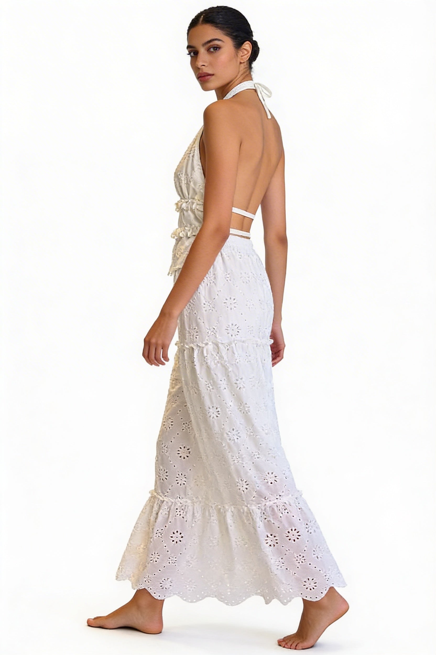 Eyelet Halter Top & Tiered Skirt Set