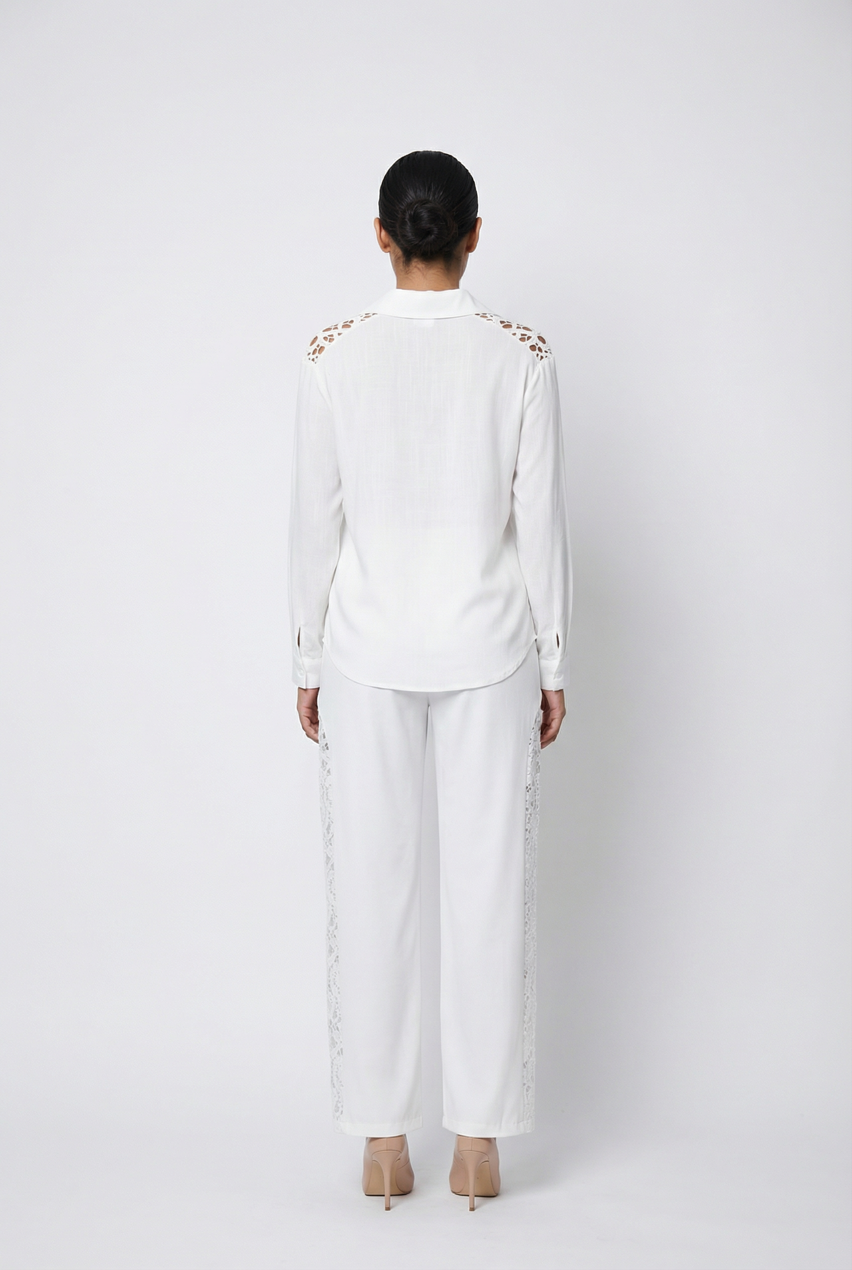 Crochet Lace Insert Cotton Shirt & Pant Set